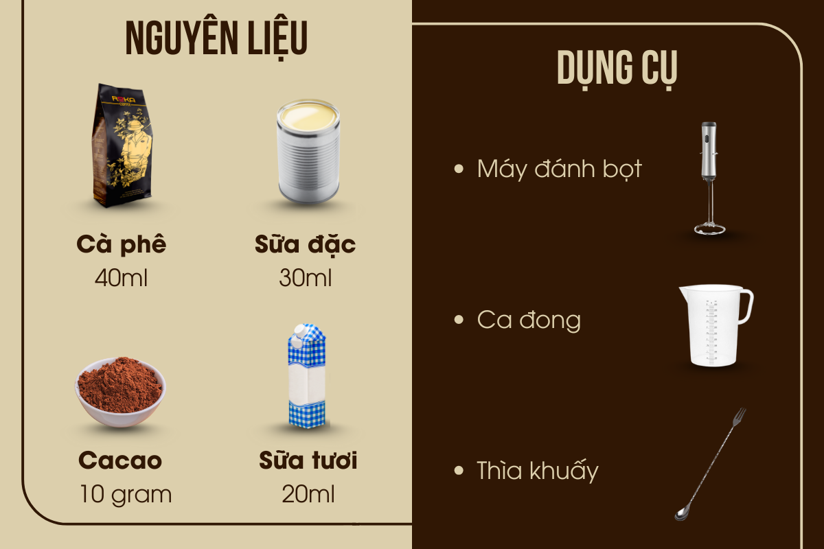 Để pha được một ly cà phê cacao chuẩn vị, bạn cần chuẩn bị: